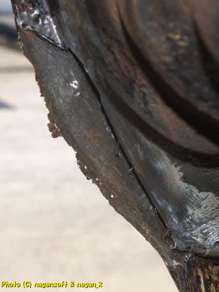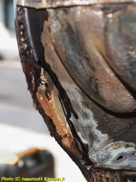 切除した箇所です。黒色は錆転換財が垂れてきて反応してしまったところ、赤茶色はいうまでもない錆のサバンナです。