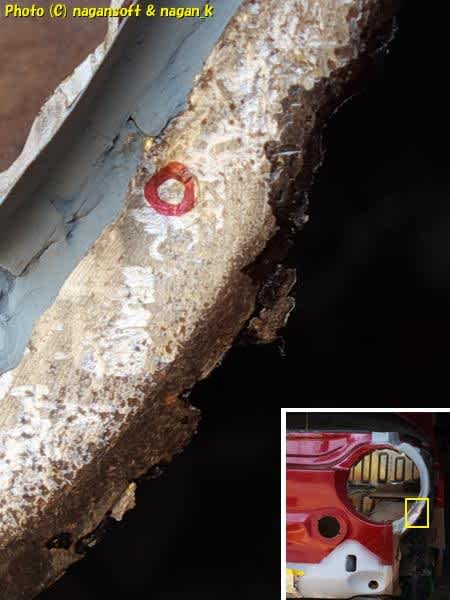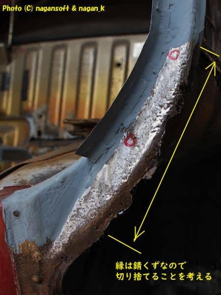 前回(1年3ヶ月前のことよ)は左ヘッドライト回りの、フェンダーエプロンとフロントパネル合わせ部分のえげつない錆くずを切除したんだよね。