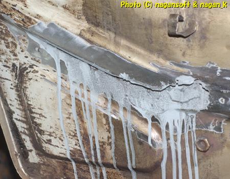 グラインダーで周辺を削ると金属の色が黒くくすんでいる箇所がたくさんありました。