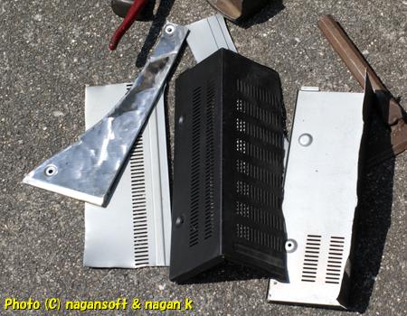 ビデオデッキの天井部分をブリキバサミでちょきちょき、