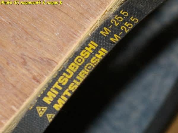 で、本当はベルトを新品にするべきなんだけど、まだまだペルト自体はしっかりしている片側の変摩耗だけ。そりゃー、ベルトの回転方向向きを入れ替えるだけでOKでっしゃろ。と再利用です。