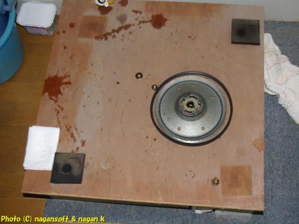ベルトのテンション調整はモーター側の台座ボルトを緩めて、台座を位置調整することで完成です。