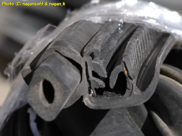 こちらも綺麗にゴムが潰れてます。そしてガラスランが….