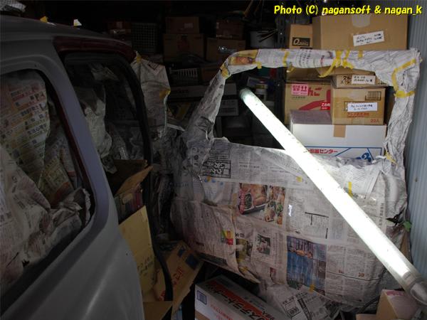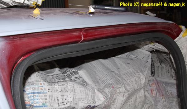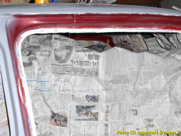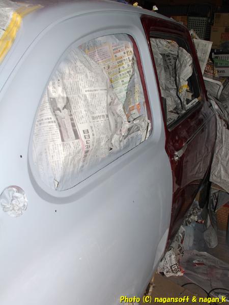 面倒だねー。またマスキングをやり直しになるねー。と思いつつ新聞紙マスキングを剥がします。