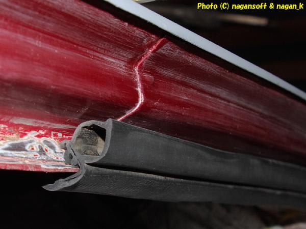 今日にガラスランが切れていること。かつ、扉の中でコーナー部分に変な亀裂デザインが入っていることなど、ちょっと変態くさくて流用品を探すのが難しそうな気配を感じ取ってます。
