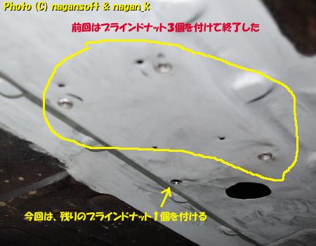 前回までに、フロアトンネル裏にブラインドナット3個を取り付けています。