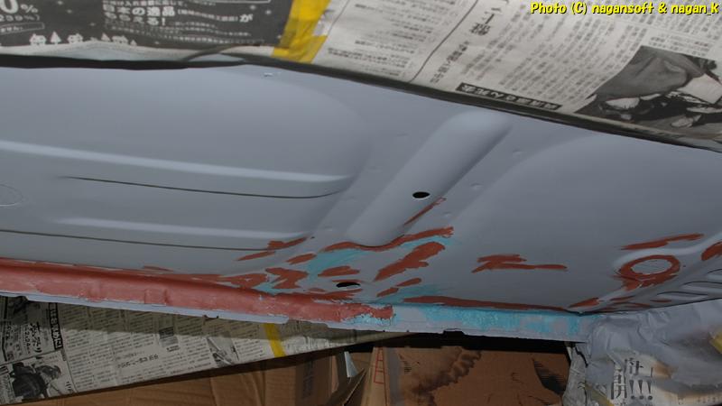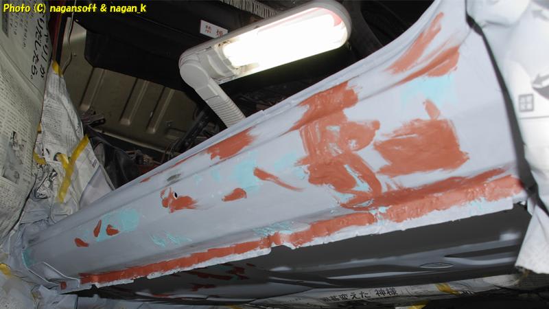 車体裏側になる、助手席床裏、後左席床裏にてパテをなすくりました。