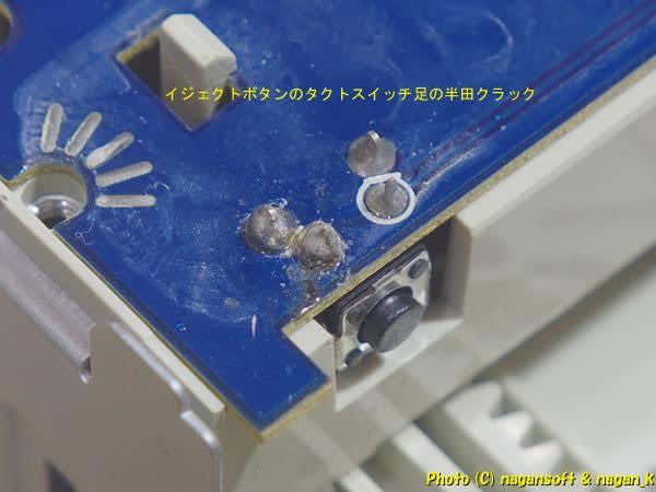 あっ。こりゃ簡単だわ。イジェクトボタン取り付け足のハンダクラックです。