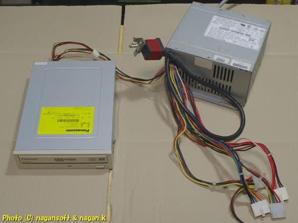 次は、IDEケーブルをつないで、Panasonic君の電源だけを昨日の単体テストで用いたAT電源へ接続してみます。