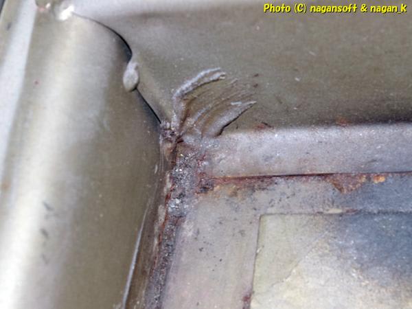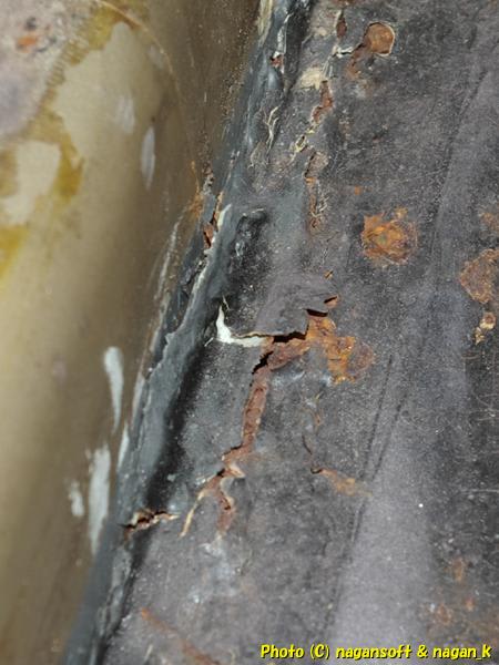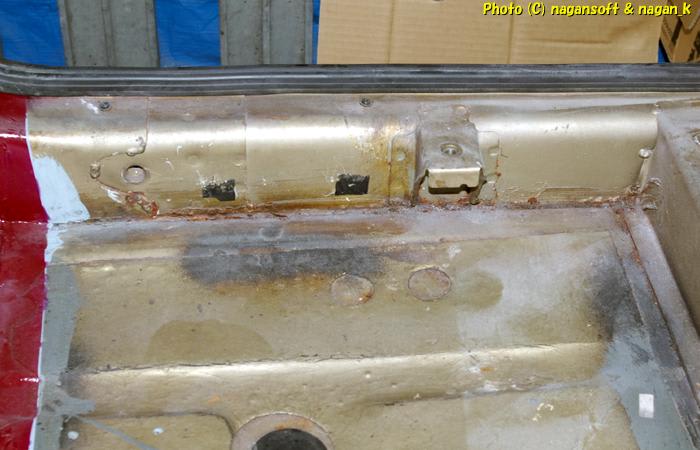 中央梁との接続部分です。右フロアと一緒でパッチ鉄板作業になるかも….
