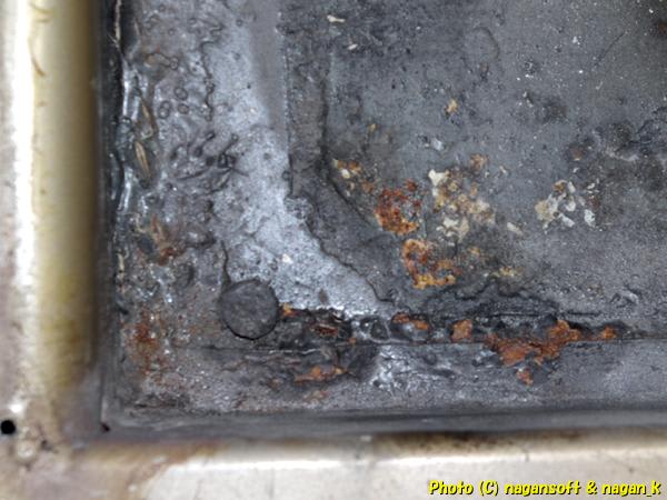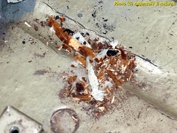 サイドシルとの立ち上がり部分に詰まっている、腐っているパテをスクレッパーでホジホジして、この程度の腐れ物質が簡単に摘出です。