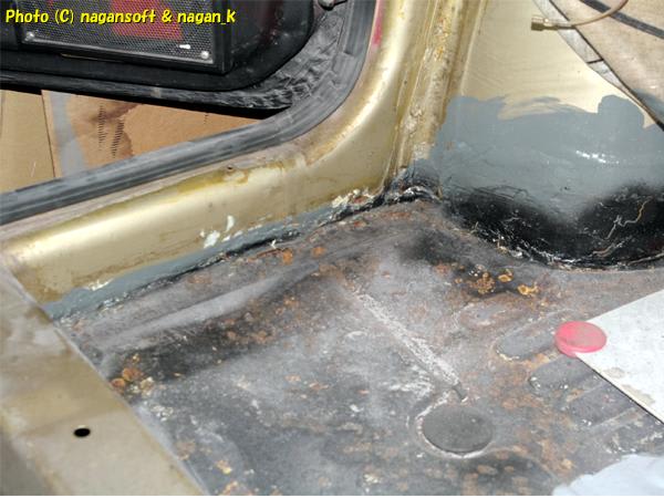 前回に、右サイドシル縁のツメ折箇所に錆び止め塗料を塗りました。