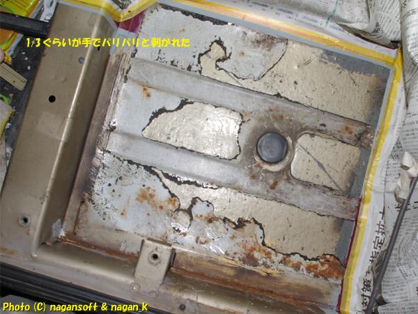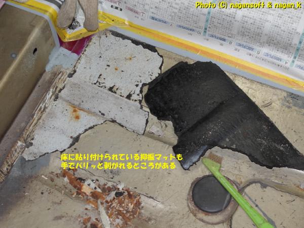 フロアに制振シートのようなプチル状のものがべったりと貼られているのですが、端が浮いていたので引っ張ってみたら、ボロッと逝かれました。