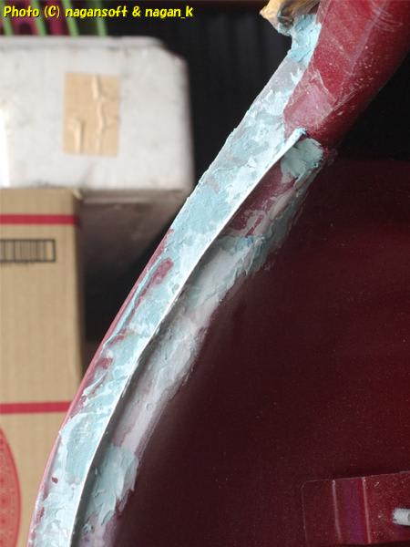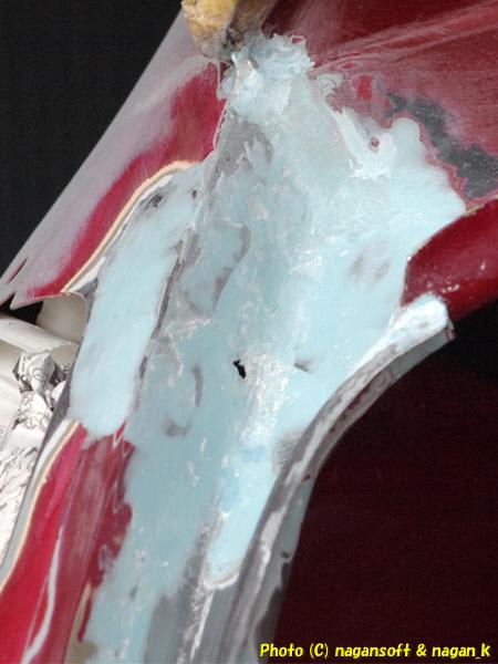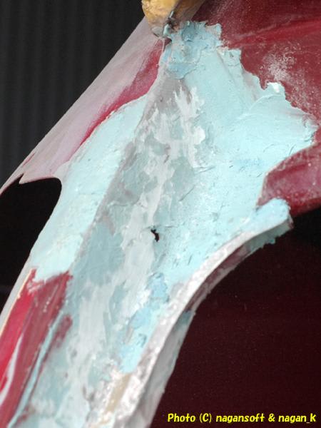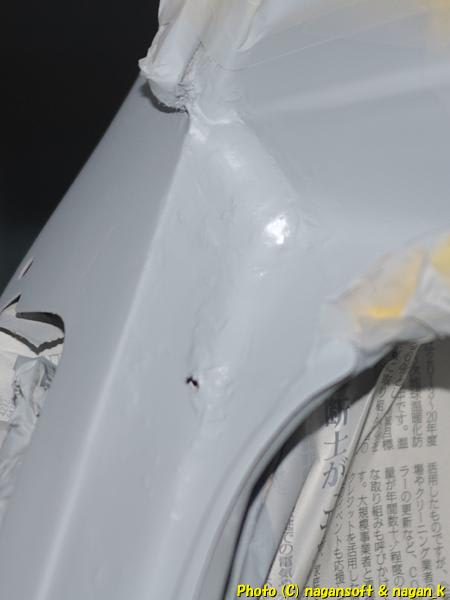 パテを塗った状態での写真撮影を忘れてました。少し指で研磨した後ですが写真撮影しました。