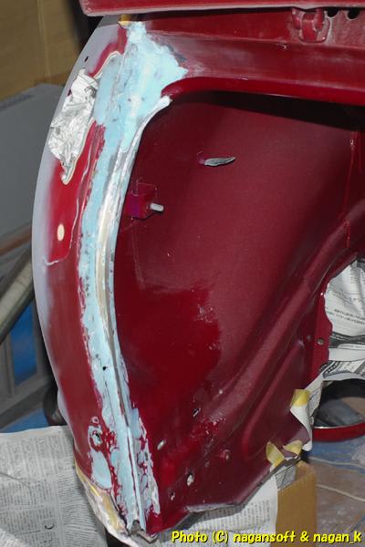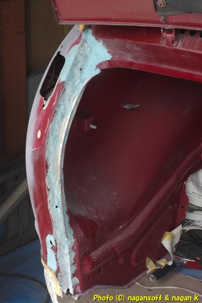 6月2日に「R-2君、左テールランプホール錆処理3日目、左リヤドリップライン修正3日目」と作業して、それから放置プレーしてますね。