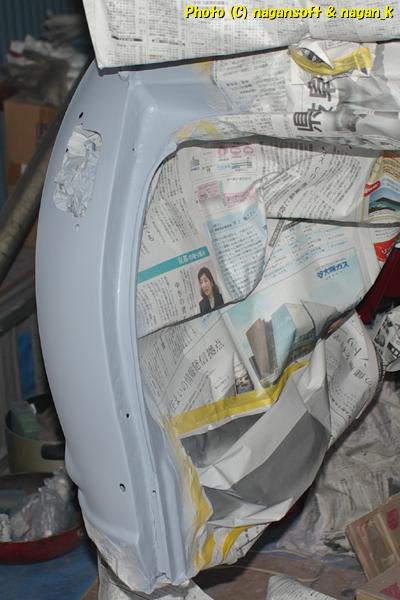 簡易ダンボール塗装ブースが水濡れで駄目になったので、今日からは車体の板金作業に復帰します。
