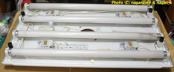 蛍光灯を天井から取り外して、まずは掃除からです。