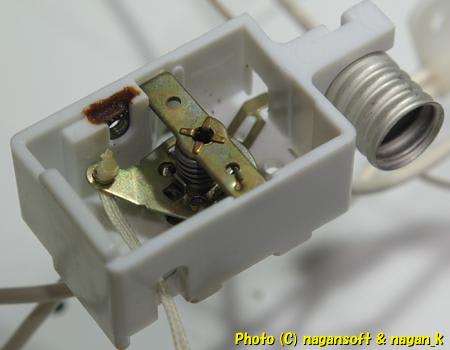 ヒモを引っ張ると、なにかがひっかかっているようでカチッとスイッチが動作する気配がまったくない状態です。