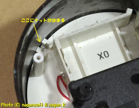 中をしげしげと調べたところ、ナットをはめこむ受け部分があります。