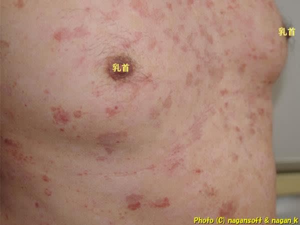 「そんなの見たらわかるよ。これはうつるタイプタイプちゃう。帯状疱疹みたいな出方しているところあるよなー。これは尋常性乾癬とタイプ違うよ。今の皮膚医院が乾癬って言うてんのん?」