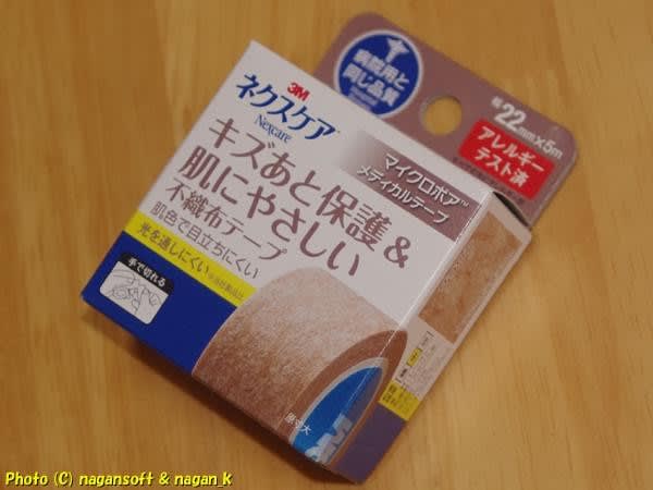 「こういうマイクロポアテープにて3か月間傷口を貼り付けておいてください」って不思議な色のテープを見せられる。