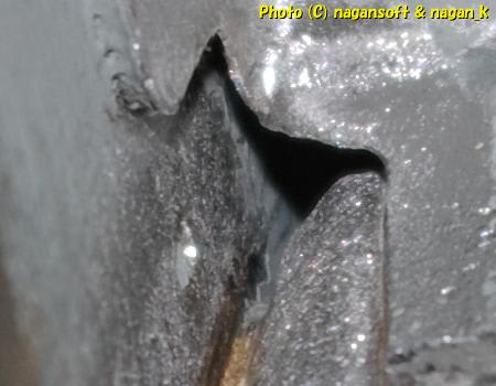 角の穴開き部分のアップ写真です。