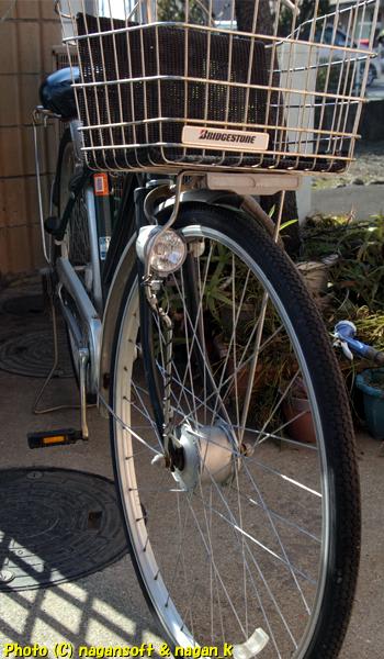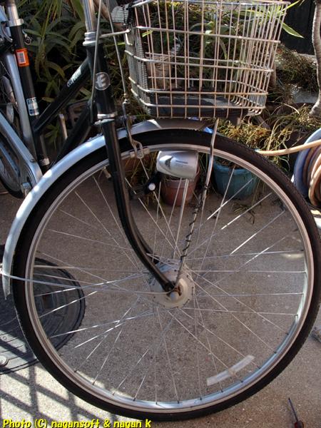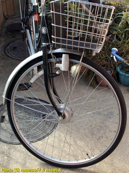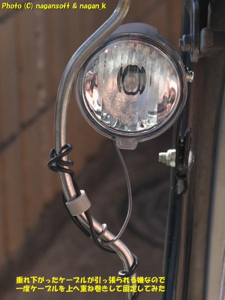 ライトの線を、前カゴのフォークに巻きつけるのですが、私が無駄に線を長く延長したので、ちょうどいいやと余計なことをしておきました。
