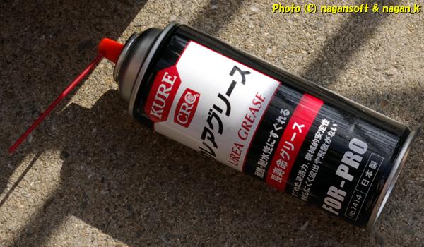 挟み込まれる部位は、モリプテングリスが本筋だと思いますが、塗膜やキボシカバーへの攻撃性があったらどうかという余計なことも考えて、私の中では、素材への攻撃性が低いだろうと想定して使用する万能グリス、「ウレアグリス」を用意しました。