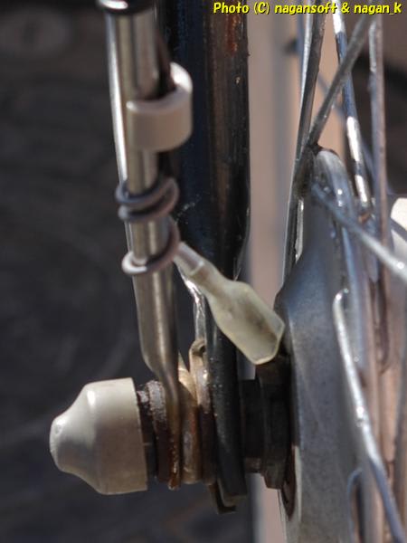 ライトの線をそのまま撒きつけると線の自重でたるみ部分が下がっていって、いつのまにか線を引っ張っている傾向にあるようです。(この数日間、よそ様の自転車を観察しました)