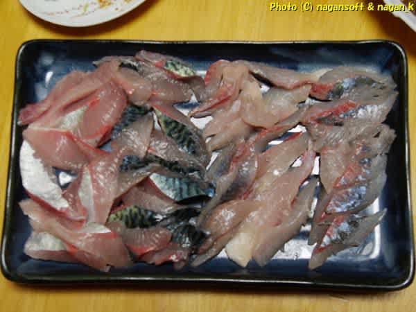 その中から、鯖1匹を刺身、鯖1匹をタタキ、鯖1匹をシャブシャブ、アジ数匹を刺身です。