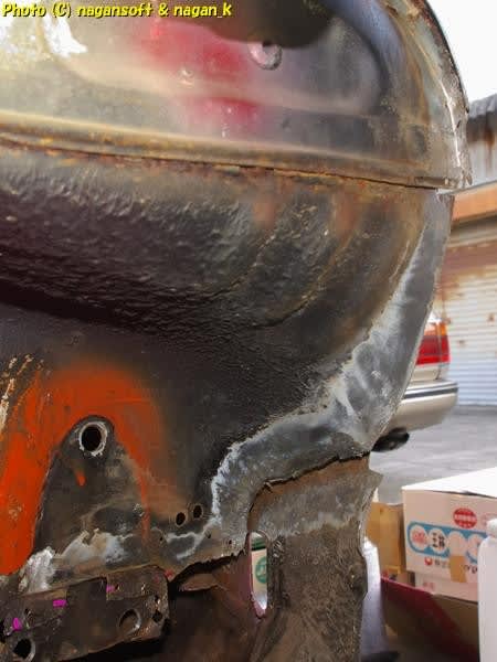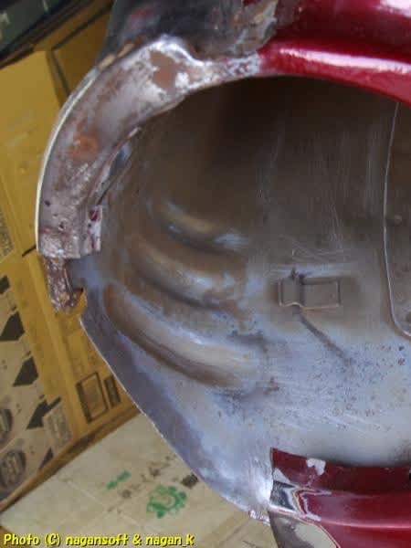 この錆屑を切除します。しかし、フェンダーエプロンはなるだけ残すように…