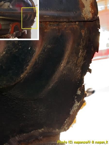 錆で溶ろけた残骸が付着しています。というか錆屑ですね。