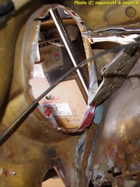 前回にフロントパネルの右ヘッドライト縁錆屑を切り捨ててほどほどのパッチピースを作りました。