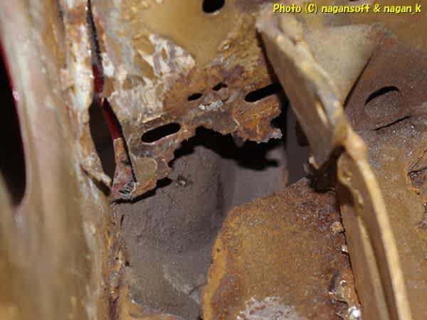 こんな錆屑写真に価値があるのかわかりませんが、案外こういうのが後々に参考写真として価値を見出すパターン多しなので、念のため裏側も….