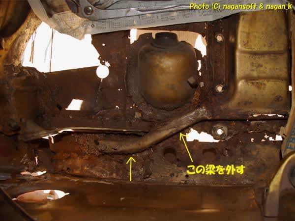 右前に伸びているオリジナルの梁があることで工具がはいらないので切断することを考えます。