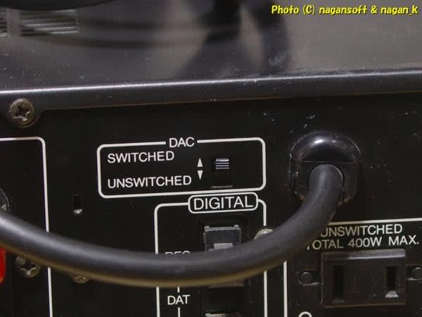このスイッチですが、フロントパネルのソースセレクターで「DIGITAL」押下で連携して内蔵DACを起動するかどうかのスイッチでした。つまりずーっとDAC回路が起動しっぱなしにするのか、ソース切り替え操作で連携するかのスイッチのようです。