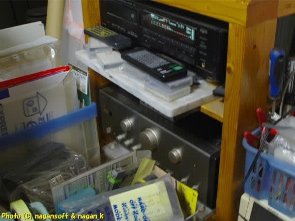 ぐちゃぐちゃの作業部屋の狭いところにおしこめているオーディオ達です。