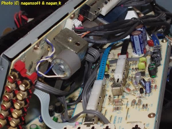 ONKYO君の天板を開けます。中央にモーターが付いたセレクターが鎮座してます。