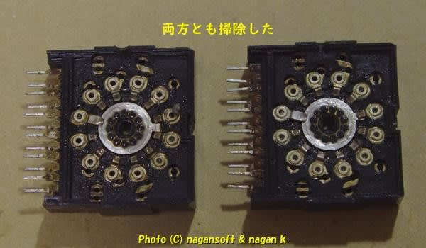 磨き掃除した物と、作業前の物を並べて撮影です。あきらかに接点部分の筋凹みが解消されているってのがわかるでしょ。