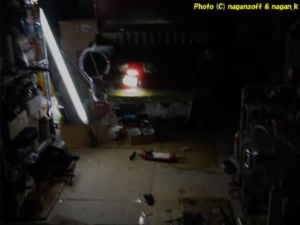 作業終了で2人の緊張が緩んだところです。とりあえず手をパーツクリーナーでよーく洗浄して、これぐらいならデジカメ持ってもいいかなってところで撮影です。