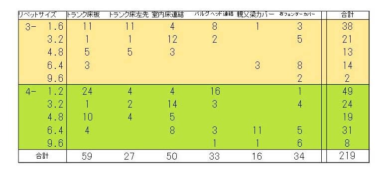 打ち込んだリベットは全部で219個です。