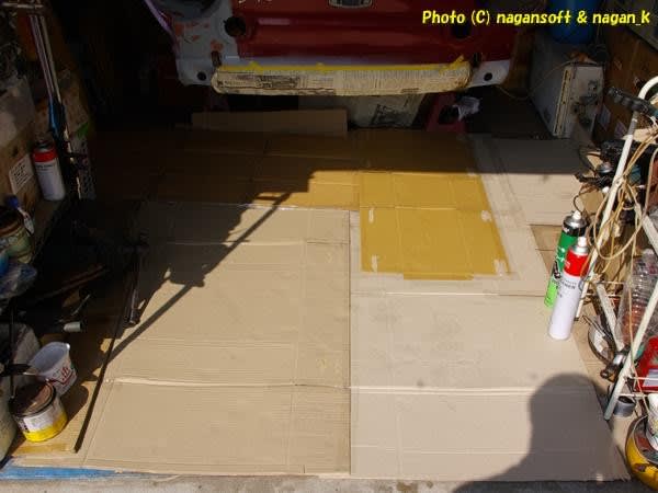 次は助手席側先端のトランク床部品を塗ってくれと指示です。