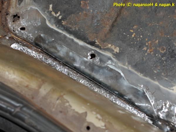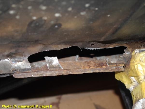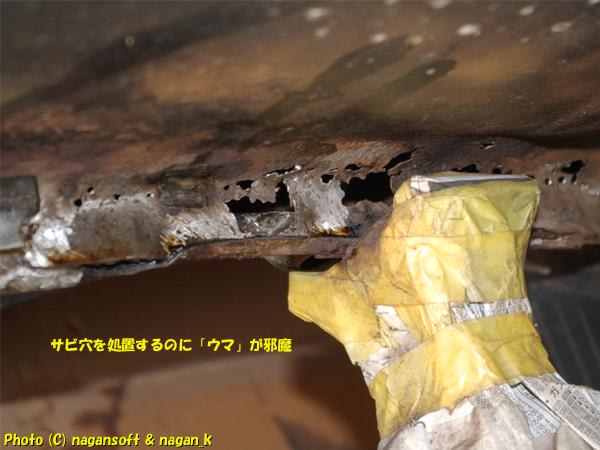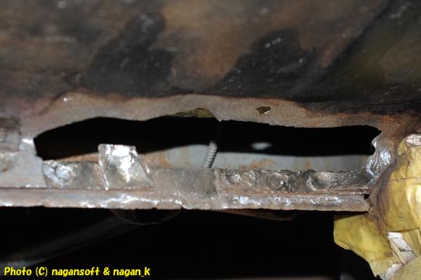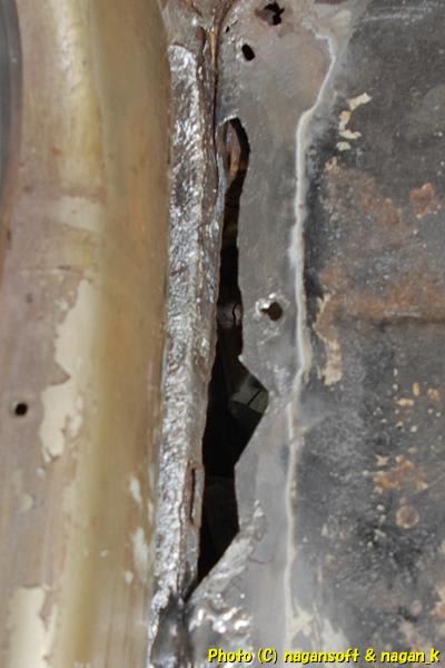どうしようかねー。サビ穴の周りの鉄もたいした肉が無いよ。ハンダで盛り上げて強化も手だけど、できたらしっかりしてあげたいよねー。