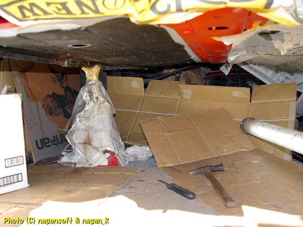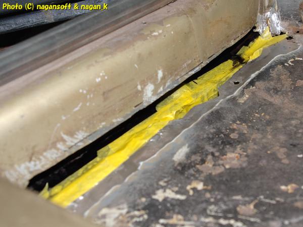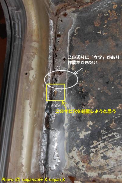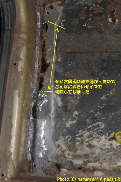 ついては、折角大きい穴が開いているのだから、ちょっと前にもしたサイドシル内のサビ取りをします。