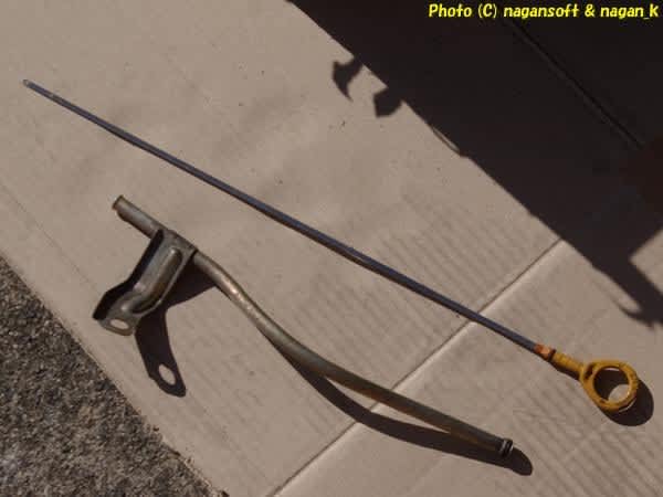 いやいやそんなことなかった。私の車体はオイルレベルゲージガイドが微妙なカーブを描いて絶妙にエンジンマウントの隙間に入ってました。