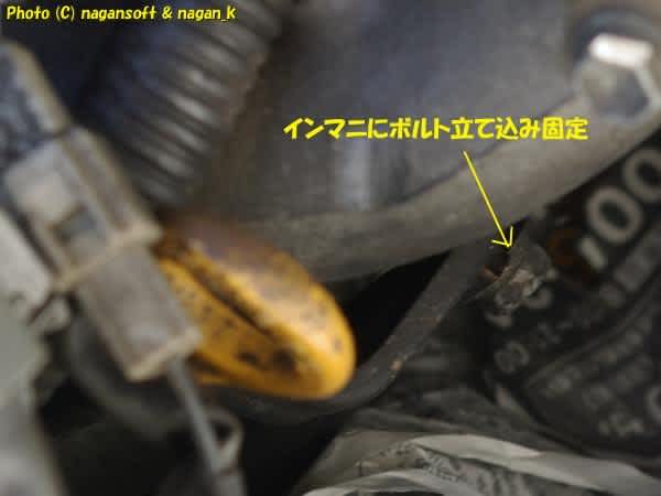 オイルレベルゲージガイドを取り外すには、インマニにボルトを立て込んで固定されてました。そのボルトを外して….