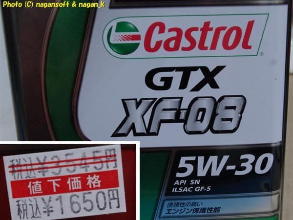 Castrol GTX XF08 5W-30 ってやつです。税込み1650円の散財です。
