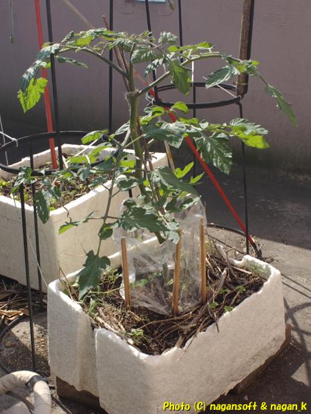 が、しかし、この発泡スチロール鉢は、去年にプチトマトを育てた鉢です。
