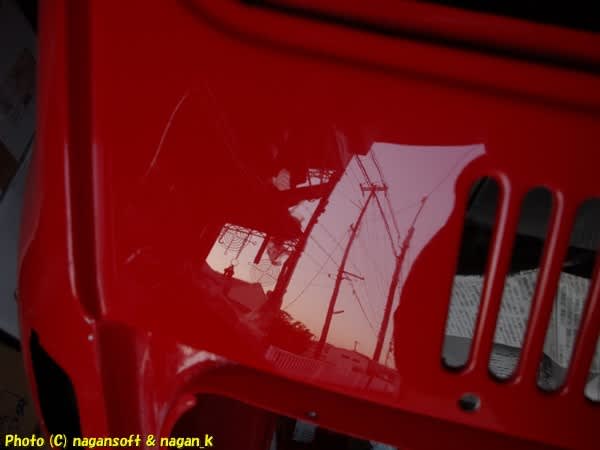 ガレージ内部が暗くなって塗装肌がわからなくなってきたところで終了です。