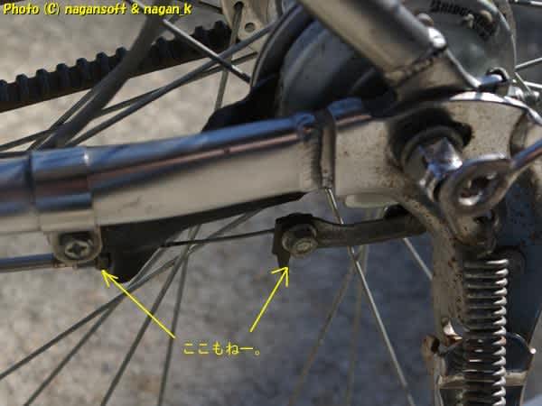 - リヤフェンダー固定棒左側が車軸に固定されていない。